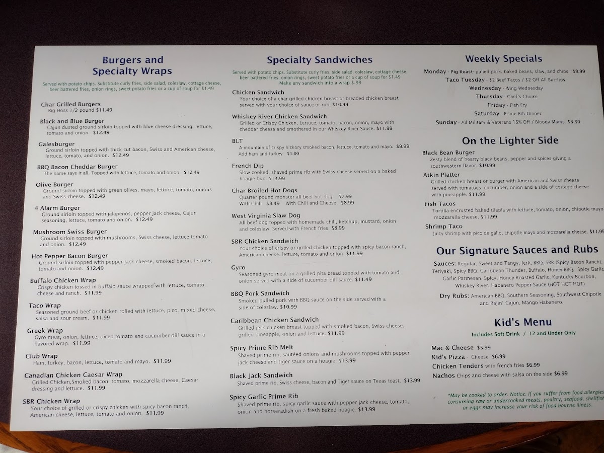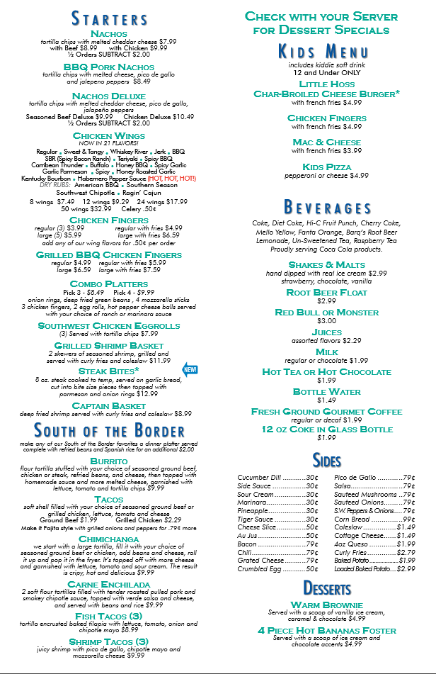 The dinner menu features a perfectly grilled Sirloin Steak and juicy chargrilled Chicken Breast Dinner, both ideal for a hearty meal. For lighter fare, indulge in the refreshing Chef Salad, brimming with sliced meats and veggies, or customize your own Chicken Salad with a sauce of your choice.