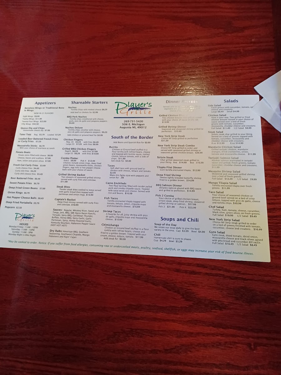 Welcome to Player's Grill - Augusta, a culinary gem located at 506 E Michigan Ave, where flavor and atmosphere converge beautifully. Renowned for its mouthwatering burgers, the 4 Alarm Burger and BBQ Bacon Cheddar Burger stand out; each 1/2 lb. patty is grilled to perfection, ensuring an unforgettable bite.